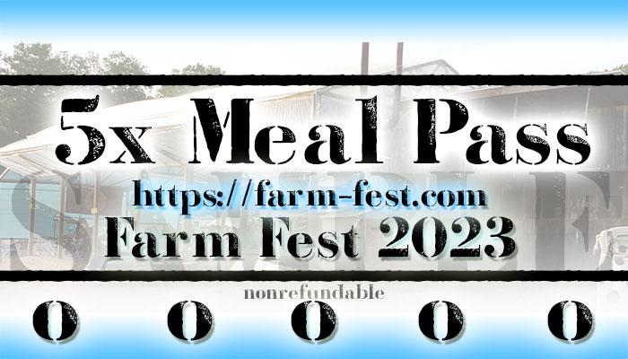 Good for five meals at Farm Fest 2024 from the Feedbag Café, shareable. Nonrefundable.